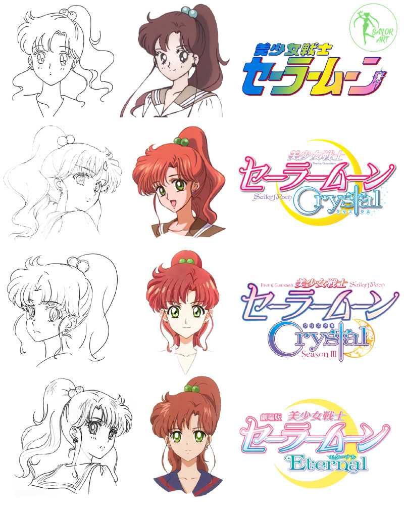 外国网友整理出《美少女战士》系列画风的对比,分别是《美少女战士》、《美少女战士crystal》、《美少女战士crystal season2》、《美少女战》剧场版eternal》四部作品。随着这四部作品的时间变化,《美少女战士》角色们的画风也在一点一点的发生变化。