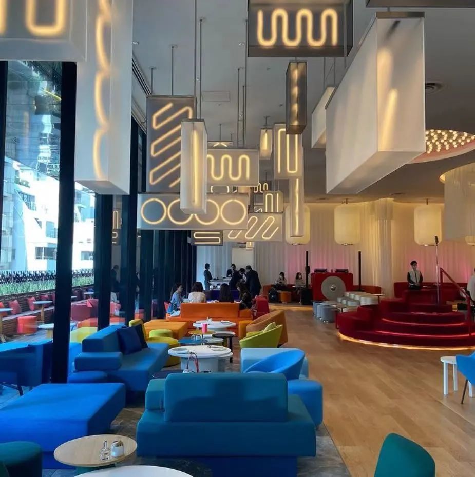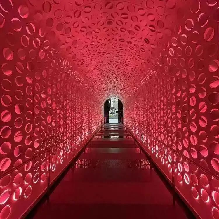 进入酒店第一步,便是穿过华丽的红色隧道,其设计灵感来源于日本传统剪纸和折纸艺术。灯光闪耀,动态迷人,似乎在告诉你:嘿,现在开始进入W世界!