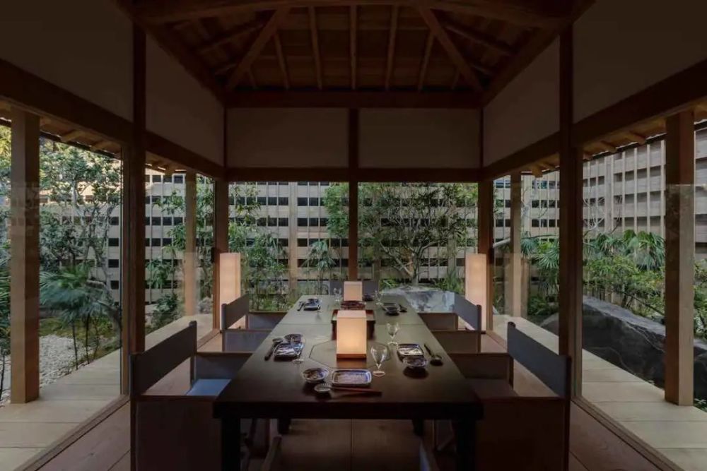 多个餐厅也是设计巧妙,大幅玻璃窗可以欣赏窗外的花园美景,氛围古朴淡雅充满禅意。