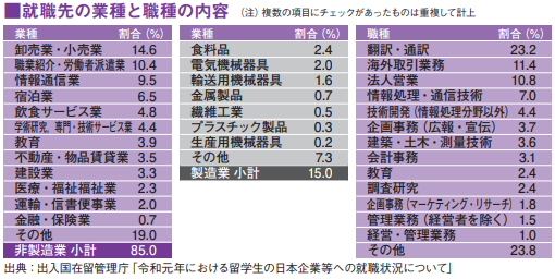 据JASSO统计,截至2020年5月1日,日本留学生数量为279,597人。2019年以在日就职等为目的进行在留资格变更的留学生数量为38,711人,其中30,947人获得许可。