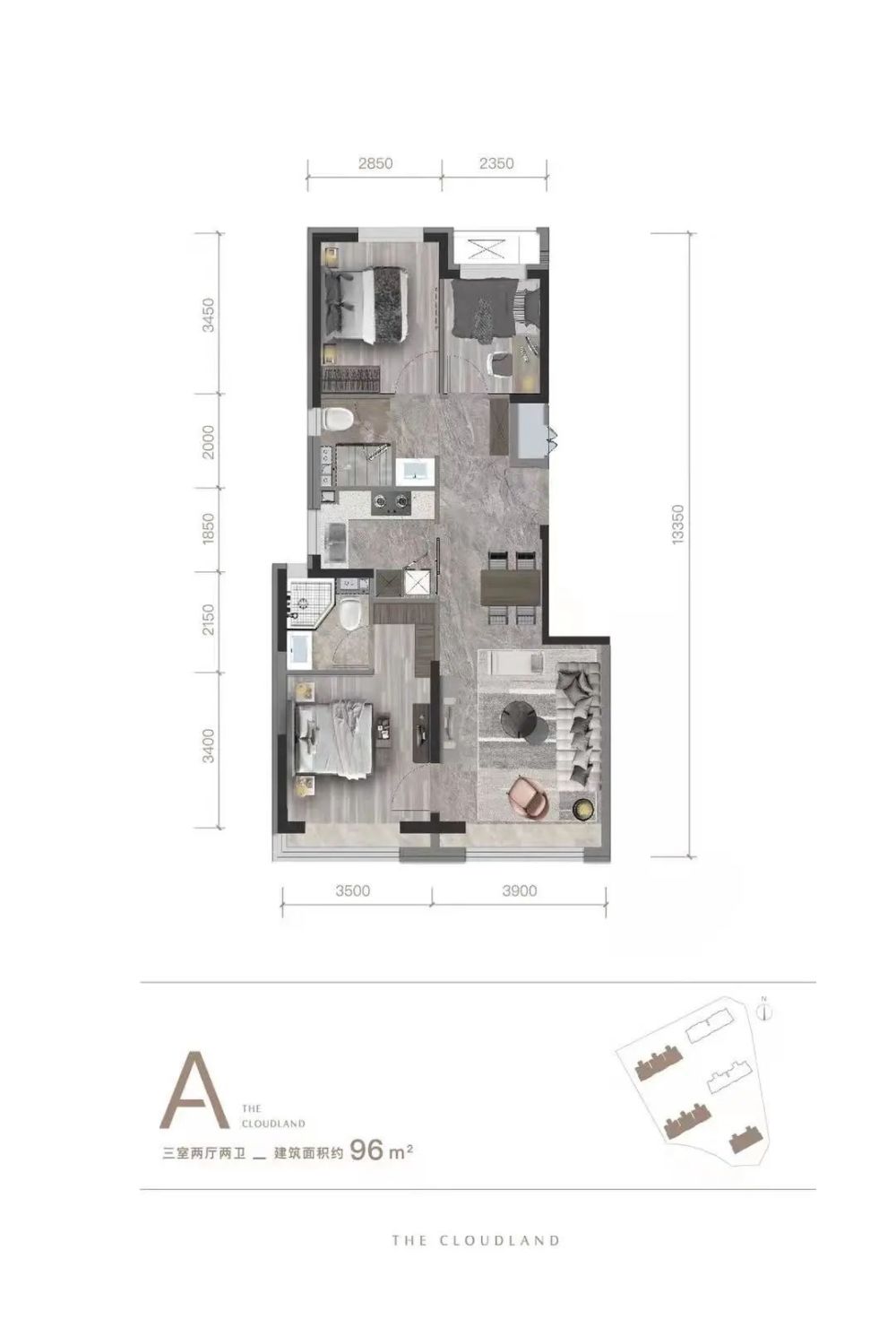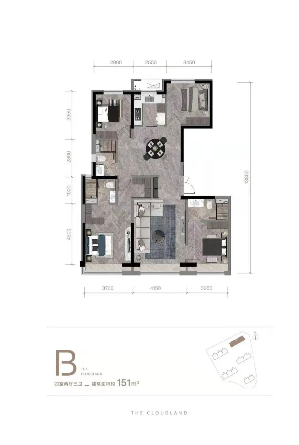 【面积区间】:三居约96㎡、4居约124㎡和151㎡