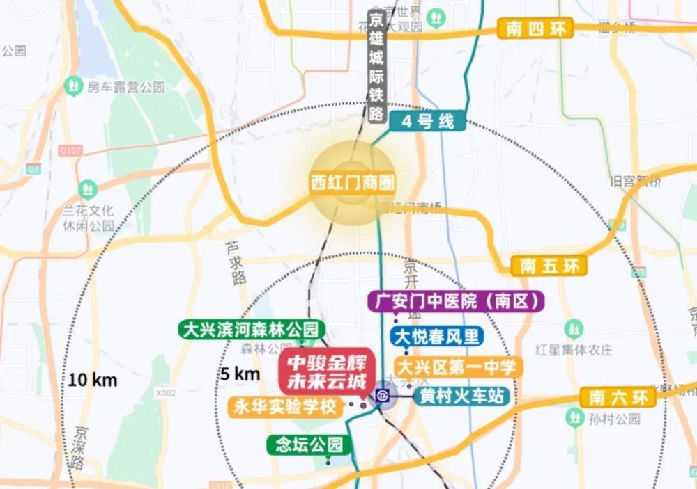 毗邻地铁4号线双站,通达主城四区各大科教、产业、商业发展板块,11个换乘站接驳10条地铁,覆盖全部城六区。东侧对望大兴高铁站,京雄双城快速通达。城铁S6号线远景规划中,未来建成将串联起顺义、通州、亦庄、大兴、新机场等地,形成一条全新的交通脉络。北通五环,南达六环,东临京开高速直达大兴机场,近城市主干道兴华大街,“两横两纵”快捷路网,城市交通立体交汇通达全城。