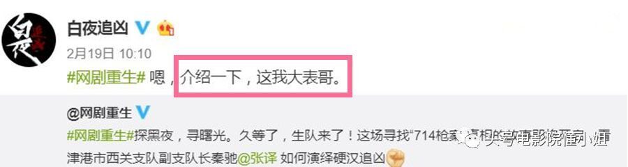 在网剧《重生》播放的前不久,《白夜追凶》的官方账号在互动时称《重生》是“我大表哥”。