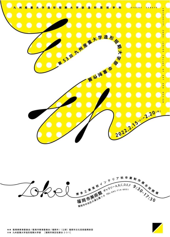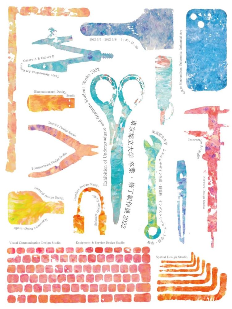 东京艺术大学的海报乍一看挺抽象的,这些红色不规则图案其实是艺术化的罗马音和数字,连在一起就是“东京艺术大学毕业展2022”的意思。