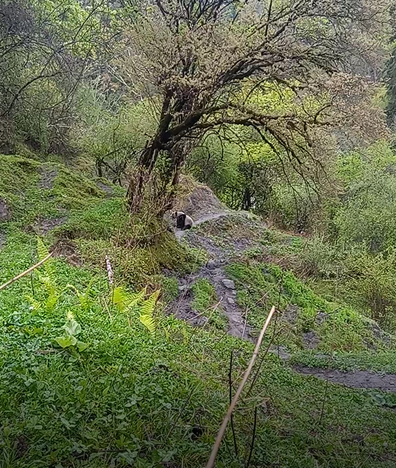 4月28日,当地村民还在同一区域发现了该大熊猫,和头一天的“形单影只”不同,据当地村民拍摄的视频显示,该大熊猫还和另一只大熊猫一前一后在道路上行走。据大熊猫国家公园宝兴县管护总站工作人员介绍,两只大熊猫均为成体,状态良好健康。