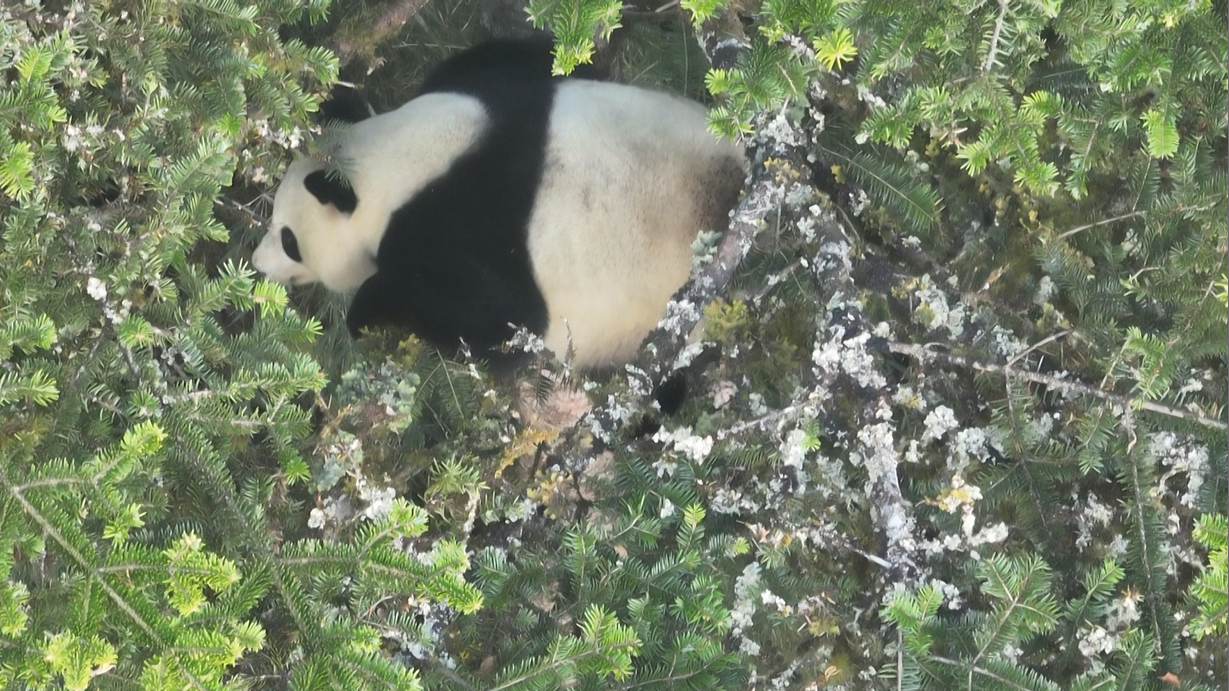5月11日,封面新闻记者从大熊猫国家公园宝兴县管护总站获悉,4月27日,工作人员在东河片区无人机巡护时,发现一只野生大熊猫正趴在树顶休息。