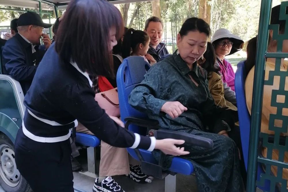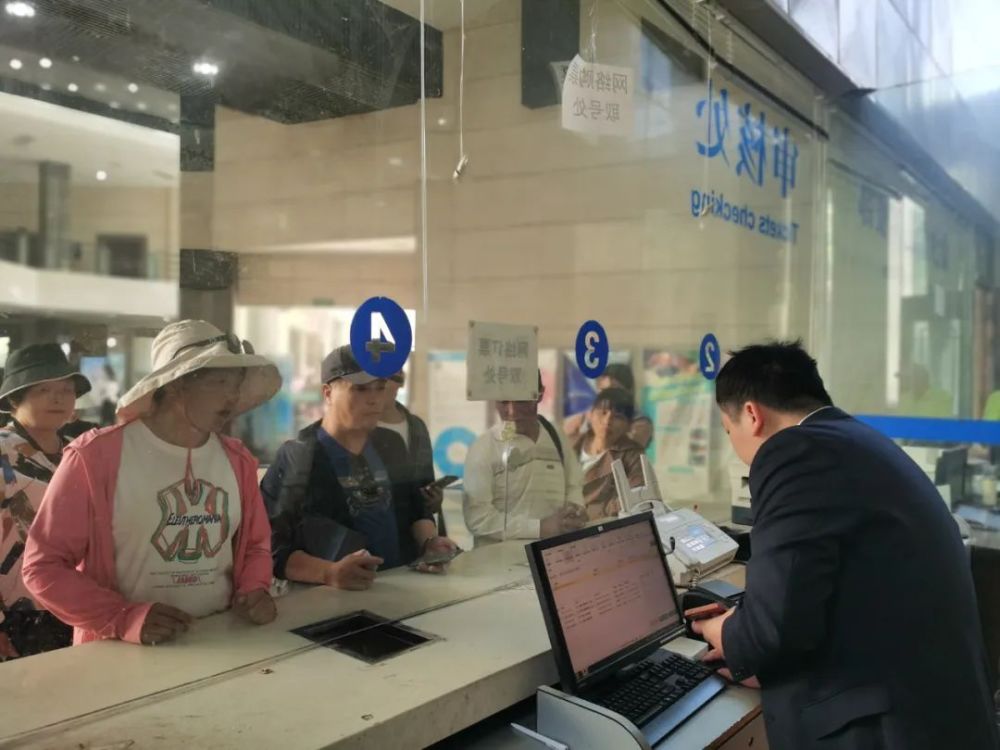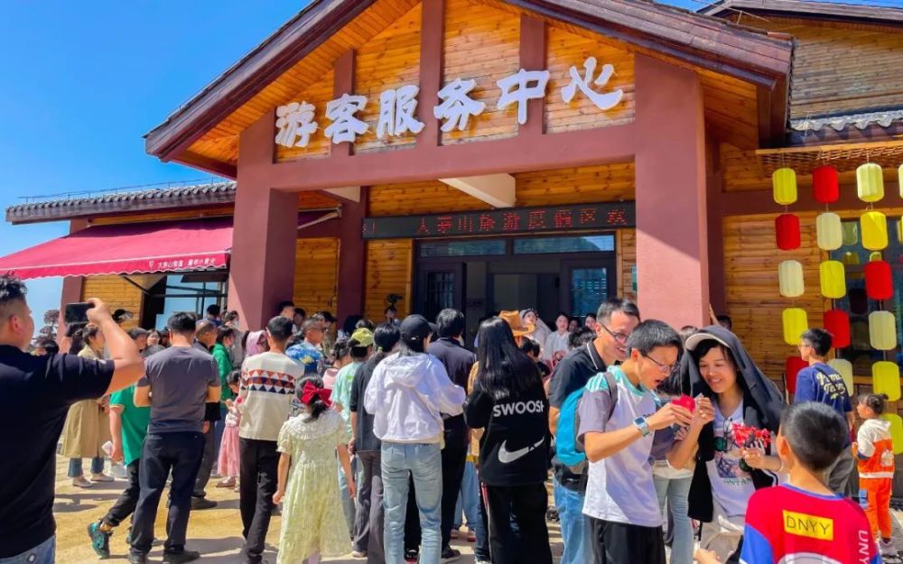 游客服务中心大厅大量游客涌入,热闹非凡。
