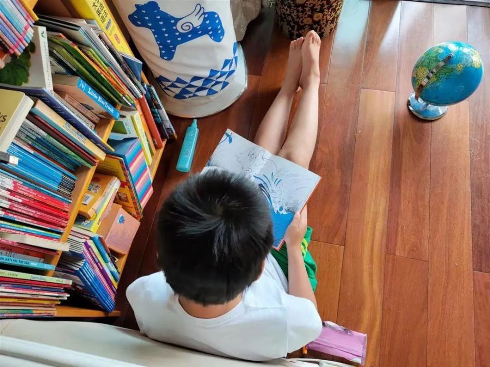 进入自主阅读阶段以后,他经常自己去书架上翻书,选书的原则不分中文英文,只要是有趣的好看的就津津有味的读起来。