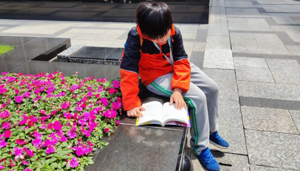 “你看这个小孩好认真哦,出来玩还学英语”
