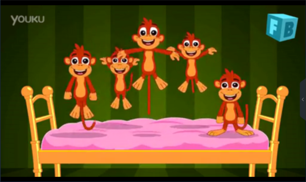 幼儿园中班下学期期末以一首英文儿歌?Five Little Monkeys Jumping on the Bed?开始了我们的启蒙之路,就因为这首歌,那段时间娃很喜欢像小猴子们一样在床上跳来跳去,屡禁不止。