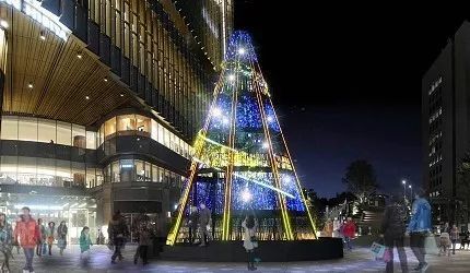 崭新购物商场「东京MIDTOWN日比谷」今年同样也有大型圣诞树「Starlight Tree」登场,以40万颗LED灯球包覆的圣诞树,不仅有奇幻的声光演出,更结合了高科技精密影像技术来表现圣诞树里的宇宙空间。此外在商场外围的路树也都披上了闪烁的灯球,不同时期会有不同光彩演出,如象征序曲的蓝、圣诞节期间的红色和金色、新年期间的白金色等,璀璨多彩的点灯秀令人目不暇接。