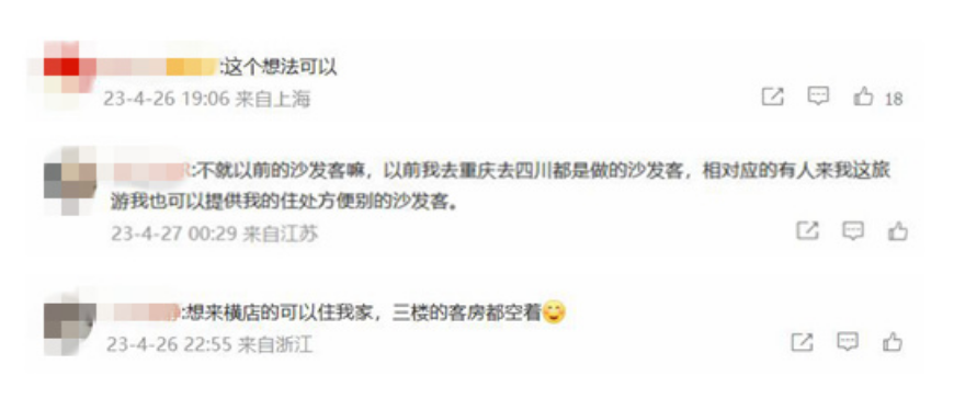 针对这种新鲜的旅游方式,有网友表示愿意尝试,认为可以互相提供便利。也有网友认为安全难以保障,“风险不可控”。