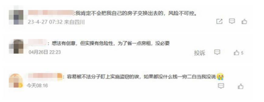 有网友表示:“最担心的就是一场旅行归来,发现自己的家已经被扫荡了,怎么办?”有网友提出质疑,“毕竟是陌生网友,万一我去了当地,有人身危险怎么办啊?”