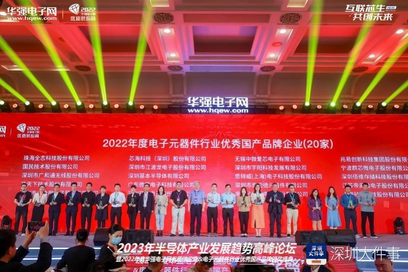 “2022年度华强电子网优质供应商&电子元器件行业优秀国产品牌颁奖盛典”隆重举办,为获得年度五大芯荣誉的企业荣耀加冕。