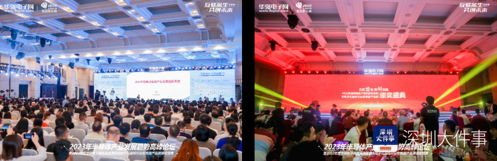 近日,由华强电子网主办的“2023年半导体产业发展趋势高峰论坛暨2022年度华强电子网优质供应商&电子元器件行业优秀国产品牌颁奖盛典”在深圳举行。大会以“互联芯生·共创未来”为主题,汇聚半导体产业上下游的知名厂商和行业专家代表近4000人次,邀请30+行业企业代表进行主题演讲及圆桌对话,分享前沿技术与真知灼见。此外,还召开“2023年半导体产业发展趋势高峰论坛”“智能汽车产业技术论坛”“硅光子技术及传感应用研讨会”,探讨半导体产业的发展趋势及前景方向。