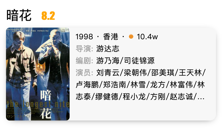 这是一部典型的银河映像黑帮片,比起暴力血腥,更多的是在哲学层面上对命运、时代、人性的思考,加上故事情节环环相扣,人物之间命运交织,高潮迭起和结局猝不及防的反转,这些元素的组合放在今天一点都不过时。