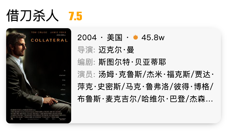 出租车司机马克斯被迫搭载杀手文森特行凶,他凭借勇敢无畏的精神,阻止其杀人并将其抓获。