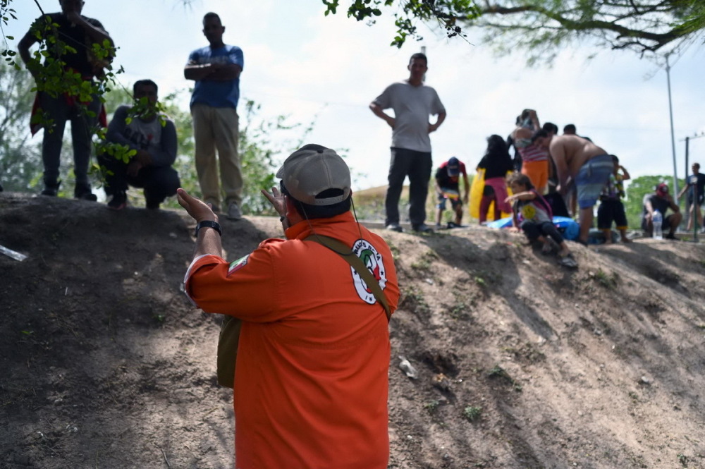 当地时间5月9日,墨西哥马塔莫罗斯,墨西哥政府人员劝阻移民不要越过格兰德河前往美国。