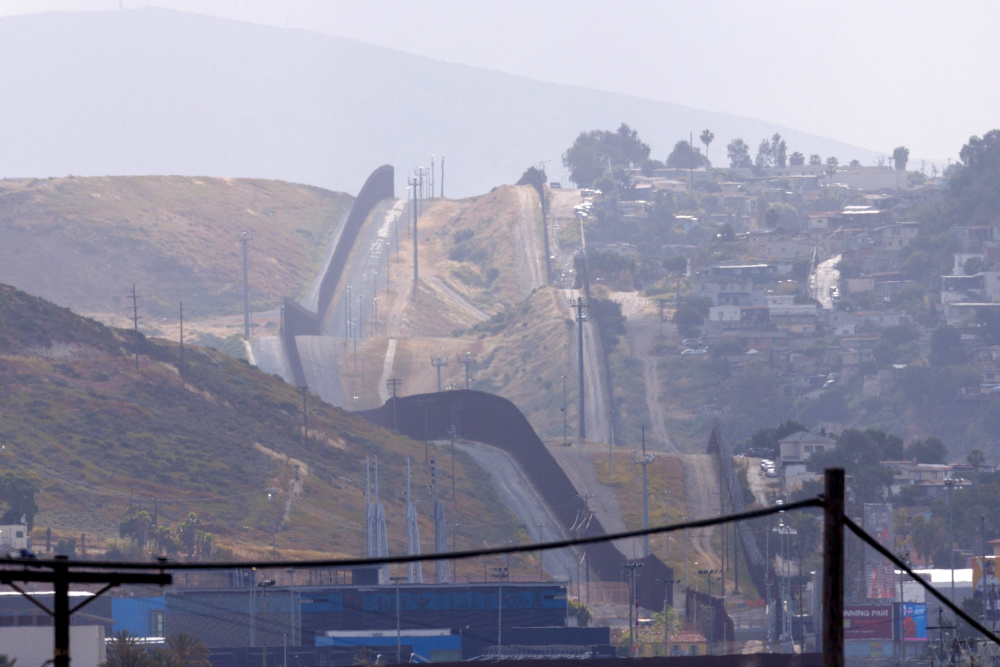 当地时间5月9日,墨西哥蒂华纳和美国之间的双重边界围栏。