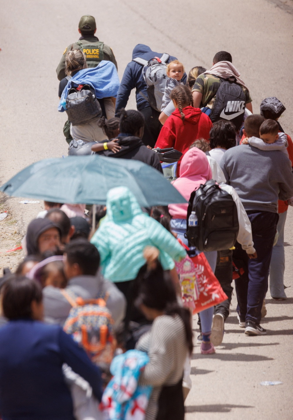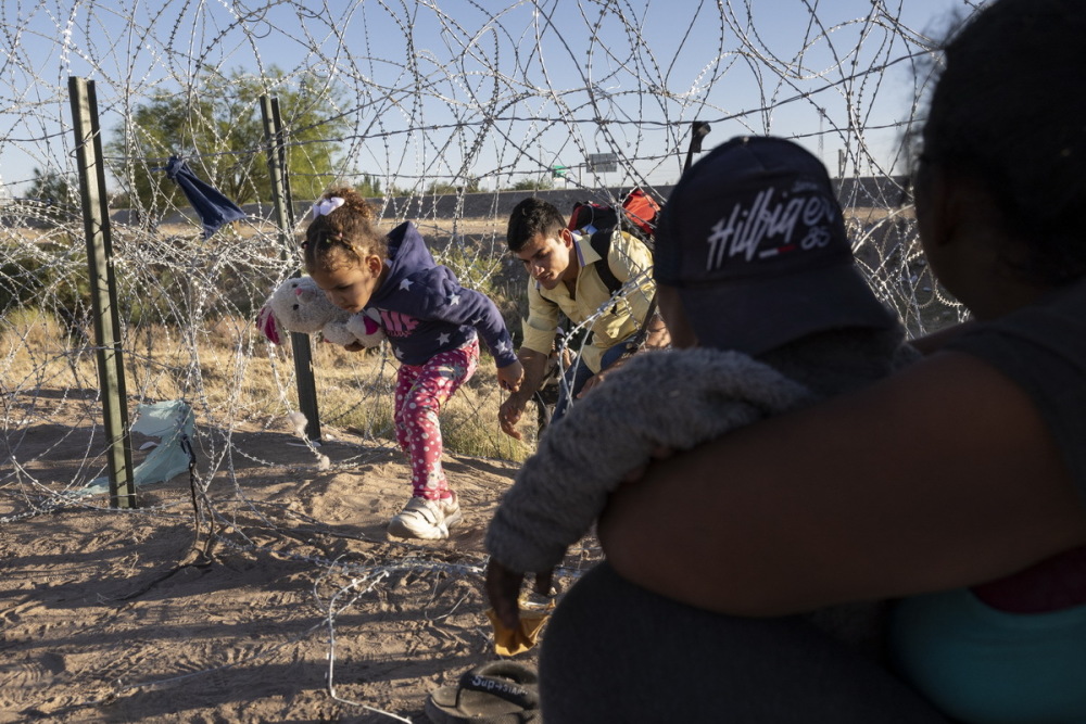当地时间5月8日,美国得州埃尔帕索,移民家庭从墨西哥越境进入美国寻求庇护。