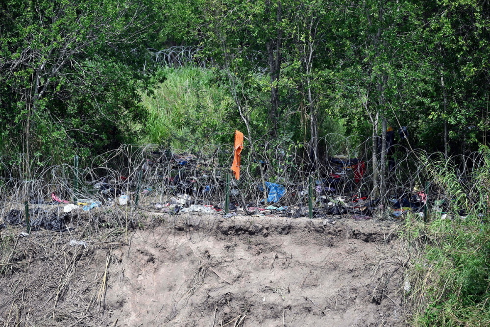 当地时间5月9日,墨西哥马塔莫罗斯,格兰德河美国一侧的铁丝网。