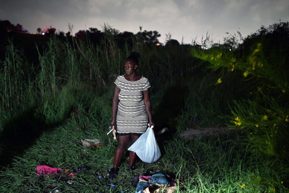 当地时间5月9日,墨西哥马塔莫罗斯,一名女子在试图越过格兰德河进入美国之前观望。