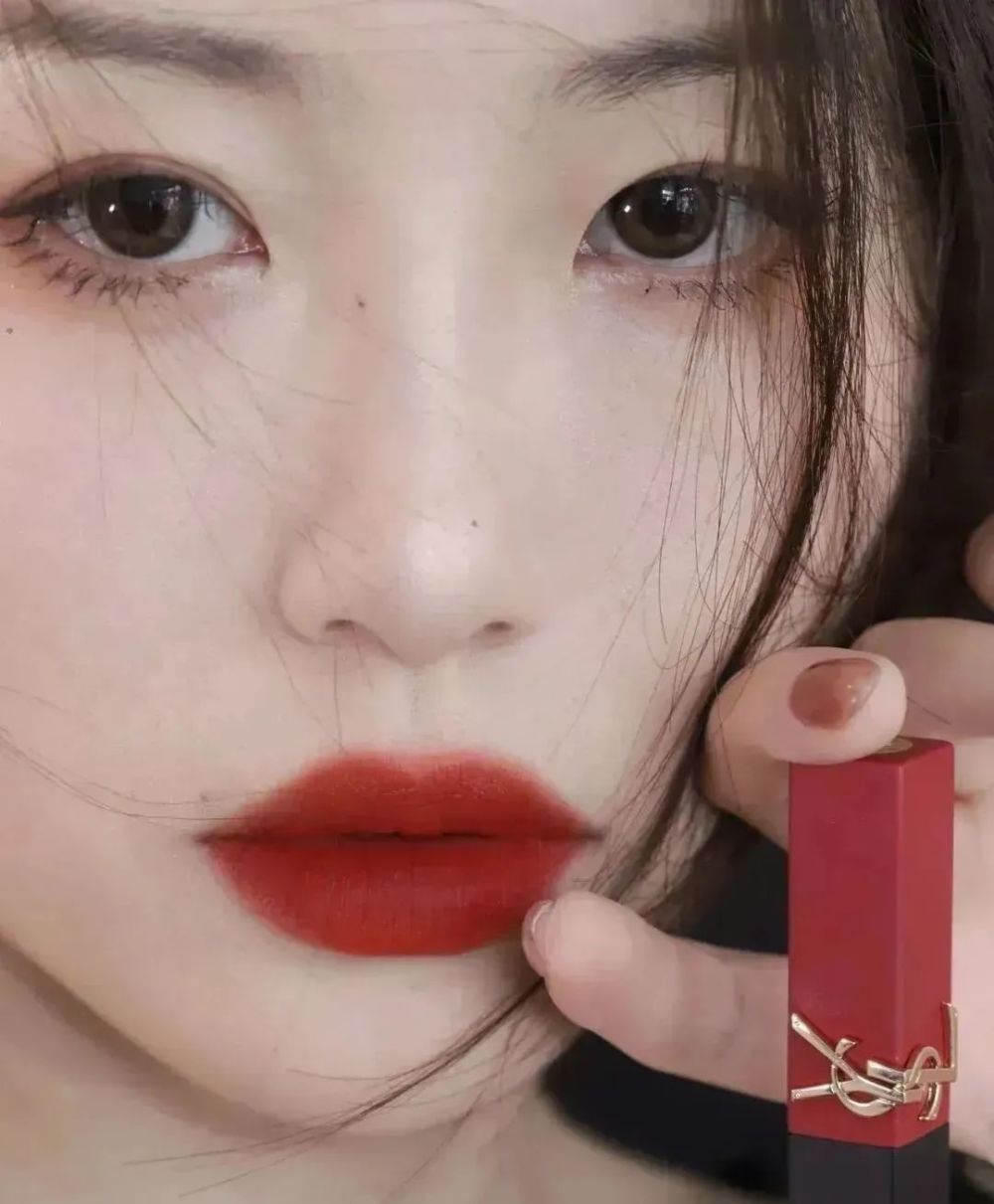 上嘴是哑光的感觉,妥妥的自身带滤镜,给人一种贵气的、优雅的感觉。
