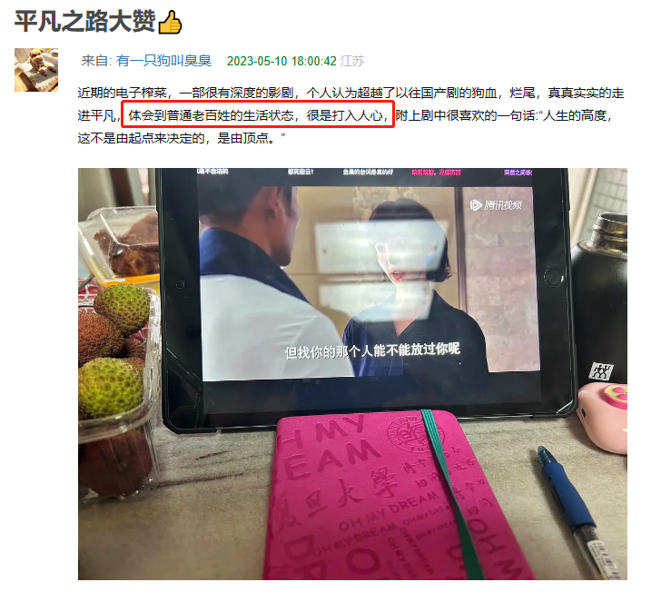 还有人认为,来自于这部剧做到了体会普通老百姓的生活状态,说人话,讲人事,深入人心。