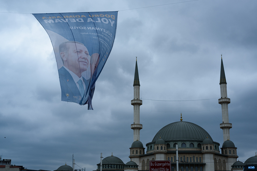 当地时间2023年5月11日,土耳其伊斯坦布尔,支持土耳其总统埃尔多安的竞选横幅。视觉中国 图