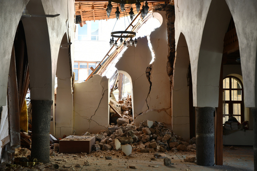 当地时间2023年2月17日,土耳其加济安泰普,被摧毁的Cevdet Pasha清真寺内部。该清真寺建于19世纪。视觉中国 图