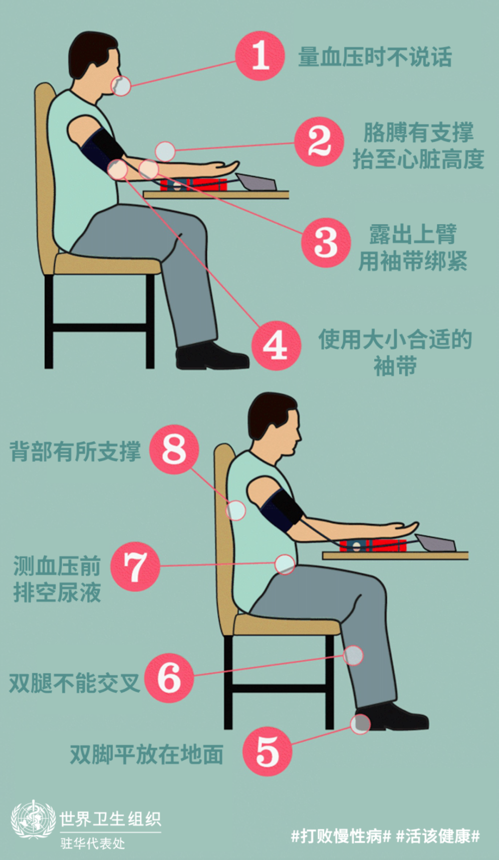 1.测血压时建议采用坐位或卧位,坐位时双腿下垂,不要交叉,两脚自然放平;