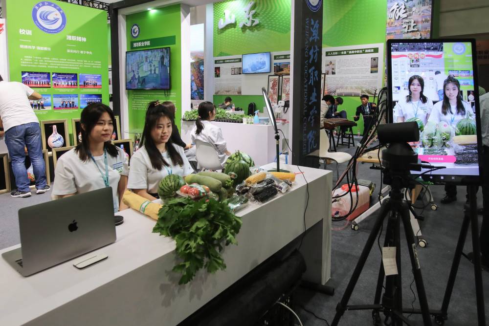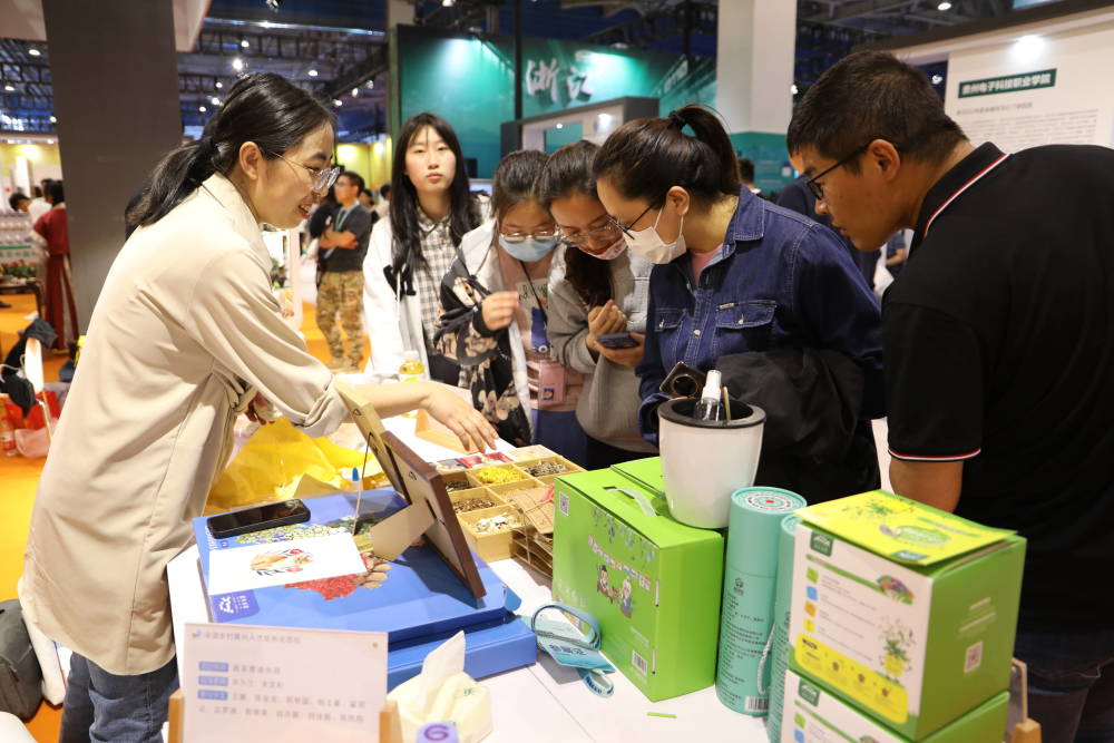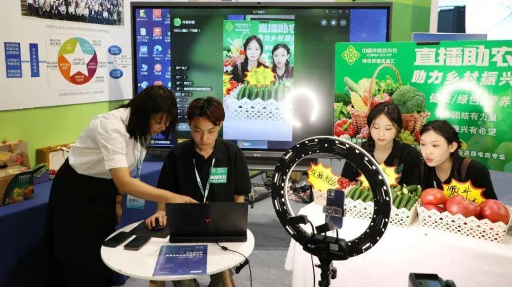 在“人人出彩”展区,学校陈列展览了供销社农家米、白茶、石磨面粉、藜麦全谷、鲜果、有机西红柿等特色农产品,并通过农产品直播带货践行直播助农理念,助力乡村振兴。来自商务工程技术系的三位学生主播声音洪亮、活力四射、讲解专业、富有诚意,吸引了展区内不少参展者驻足围观,更是在线上取得了不俗的销售成绩,以实际行动宣传带动农产品销售,帮助菜农增收。