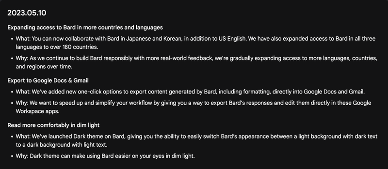 迁移到它之上的 Bard 首先是开放了免费自由访问(之前需要排队),支持超过 180 个国家和地区,按计划将很快支持 40 种语言(包括中国和中文)。