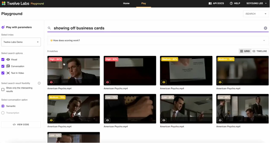 Twelve Labs能够做到让AI读懂视频,并且通过关键字搜索的方式从视频中提取特征,例如动作、对象、屏幕上的文本、语音和人物。
