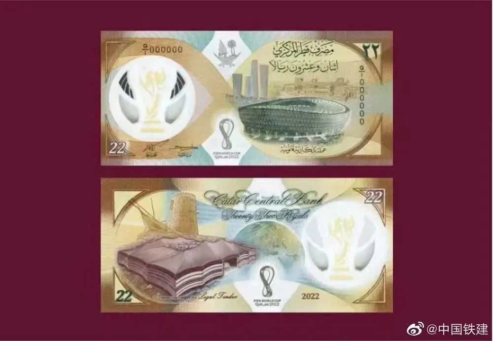 2022年卡塔尔世界杯特别版纪念钞票,上方图片为卢塞尔球场。