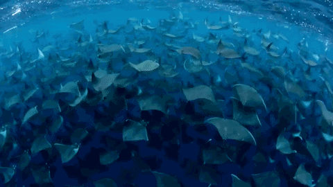 马尔代夫芭环礁(Baa Atoll)是全马代唯一的联合国生物保护圈,而其中的哈尼法鲁海湾(Hanifaru Bay)则是世界上最大的蝠鲼聚集地。每年5-11月间,成百上千只蝠鲼会聚集在这片足球场大小的海域里,暴风式进食,超级壮观。So这个一年一度的马代必体验项目——与蝠鲼同游,一定不能错过!