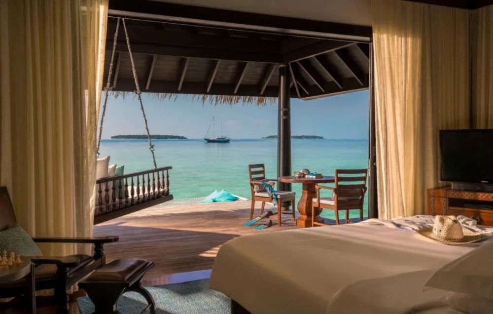 酒店亮点:沙屋、水屋、树屋、星空泡泡屋多种房型可选,基础水屋5天4晚人均只要17440,预算充裕的话推荐Ocean water villa,下水就是海沟,浮潜一级棒,持证的话,还可以去不远处的蓝洞,去过的小伙伴反馈体验非常赞。尤其是此次的推文的主题——追踪蝠鲼,阿米拉只需要10分钟的船程,太方便了。