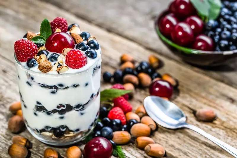 减肥时可以选择奶制品(无添加糖的酸奶及牛奶等,如果每日食用量大应选择脱脂或低脂奶制品)及坚果(无盐)作为零食。
