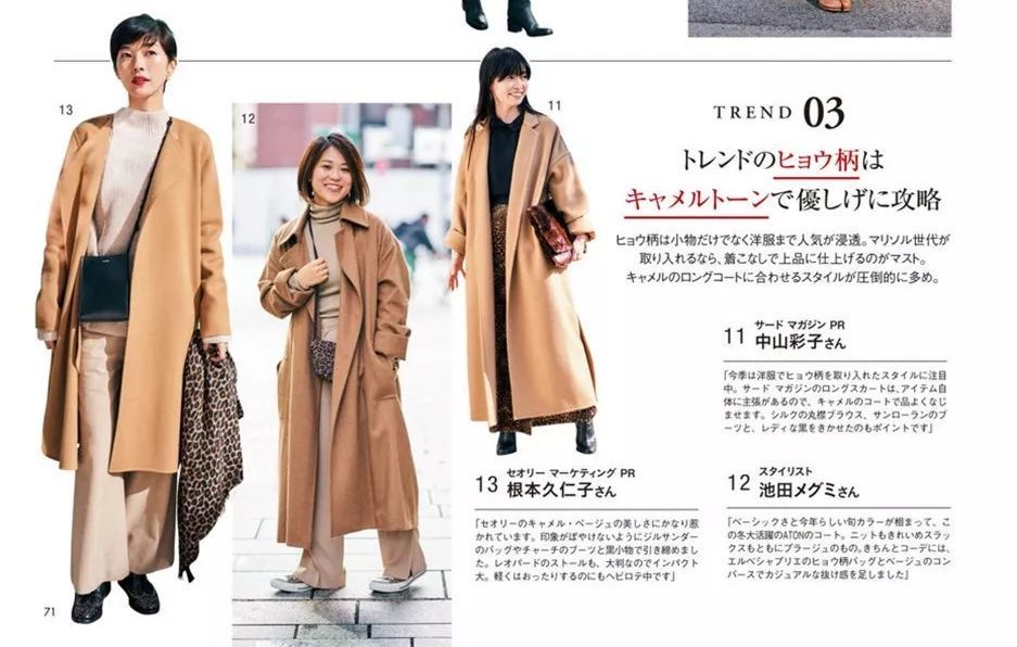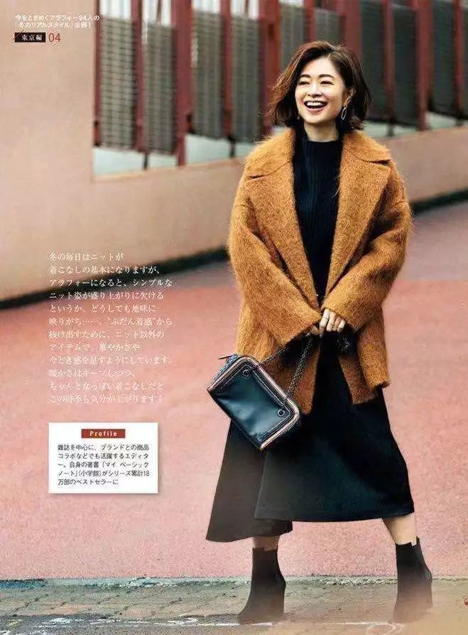 根本久仁子,最近又上杂志了,这是Marisol杂志中的她,驼色的大衣街拍照: