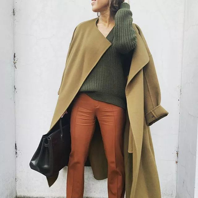 上周我也很喜欢大草直子的这一身大衣外套的搭配,内搭焦糖色长裤和针织衫。这个颜色真的蛮适合我们穿衣灵感的。