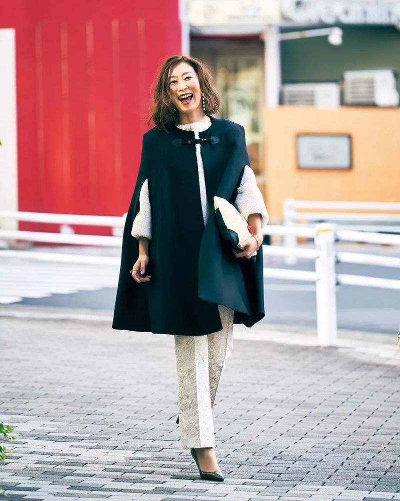 齐藤宽子是小个子博主当中比较成功的,不仅出了自己的书,也出了适合小个子女生的品牌服装。她目前的街拍大部分衣服都来自于自己品牌。比如上面的黑色连衣裙,侧面还有若隐若现的开叉与白色镶边。