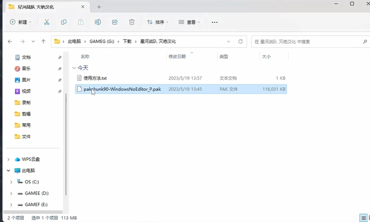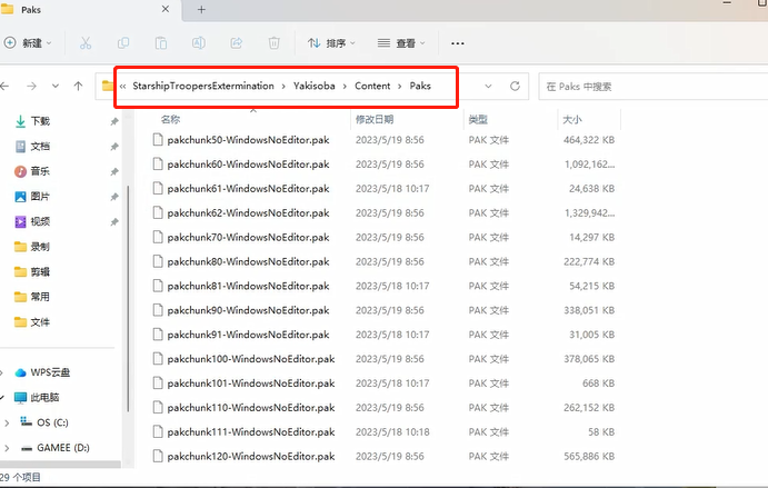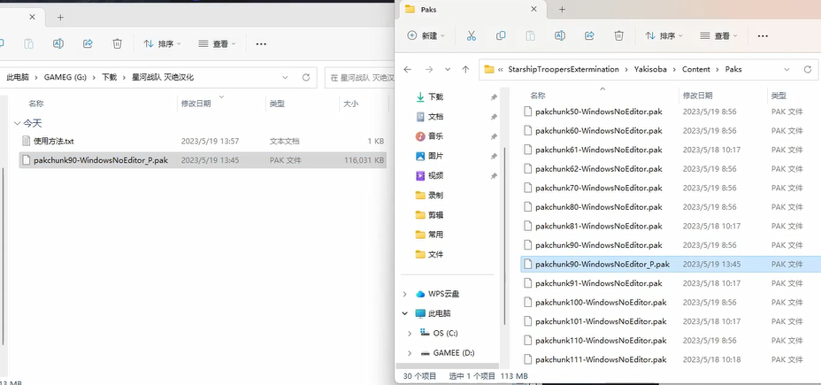 复制刚刚解压的汉化文件,粘贴到到游戏本地文件中的Paks文件下,具体文件路径:
