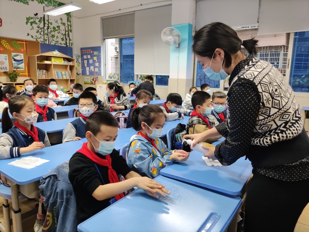 奔往课堂的忙碌身影,让沉寂已久的校园,再次焕发勃勃生机。如今,温州市建设小学(小高桥校区)已经迅速恢复了往常的上课节奏,老师们通过开展主题班会、发表感言等形式上好复学第一课,为学生普及防疫知识。
