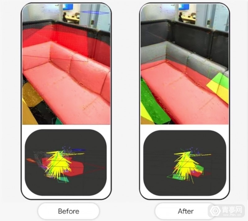 谷歌指出,ARCore识别物理平面的错误率下降了52%,这意味着AR可以和物理空间更好的融合,正确的固定在地面、桌面等表面上,避免穿模。