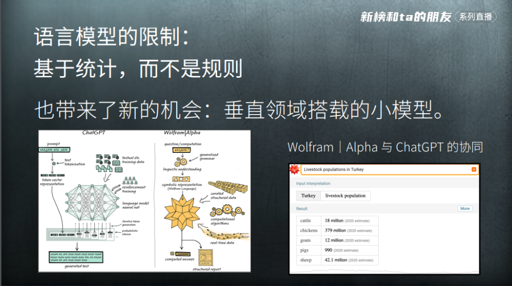 这会导致AI对很多事情的理解和推演可能会出现问题,但是也带来了新的机会,就像刚才说的在需求转化上存在限制,那么垂直领域搭载的小模型就有机会了。