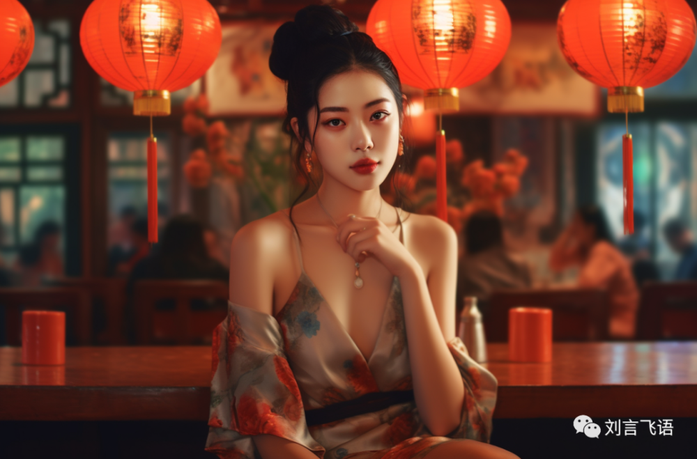 我们再看这张图,比较有视觉冲击力,大家可能觉得不像是一个AI靠拼凑能生成的,至少在两个月之前,我们都想象不到AI能把光影画得这么好。