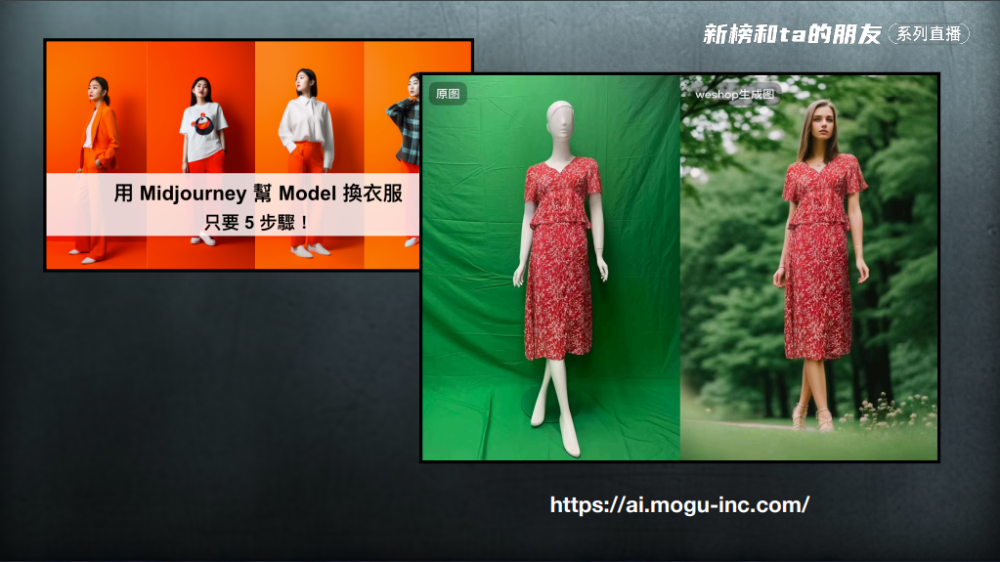 再比如说有博主分享用Midjourney帮模特换衣服,你可以把不同的衣服放到AI模特身上,这意味着电商行业可能也会有非常大的变化。