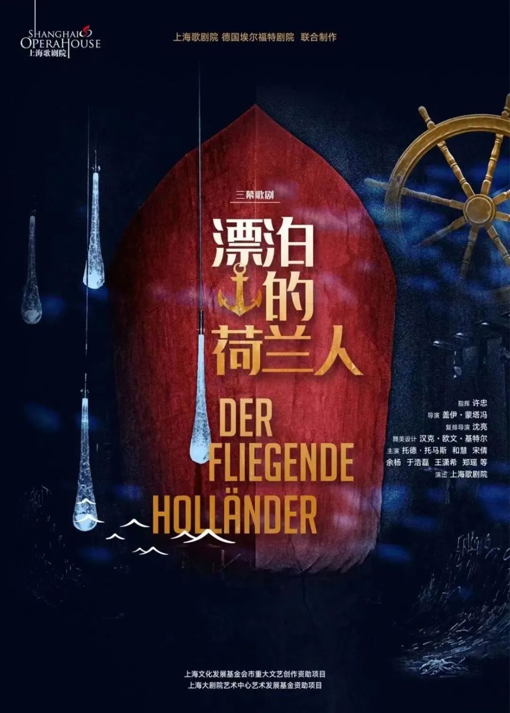 歌剧《漂泊的荷兰人》由上海歌剧院与德国埃尔夫特剧院联合制作演出,本次演出由著名指挥家、钢琴家、上海歌剧院院长许忠执棒上海歌剧院合唱团、交响乐团,特邀著名男高音歌唱家托德·托马斯、著名女高音歌唱家和慧,携上海歌剧院女高音歌唱家宋倩联袂主演。