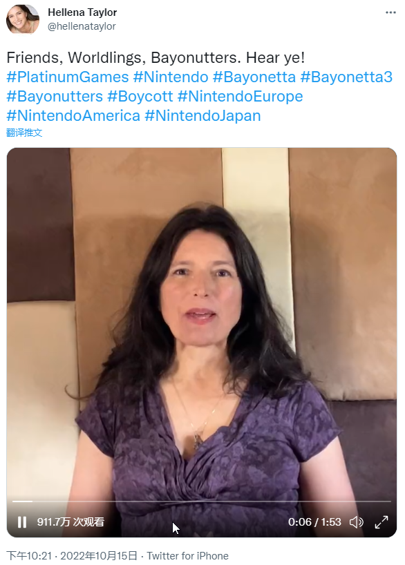 10月15日,一度对这个问题保持沉默的赫伦娜,突然在推特上发布了四则视频。根据赫伦娜的自述,她是因为白金工作室提供的薪酬太低才拒绝出演,为此还呼吁玩家抵制《猎天使魔女3》。