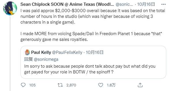 一些业内人士对赫伦娜的境遇发表了评论,并给出了自己的经历和薪酬待遇以供参考。例如,肖恩·奇洛克(Sean Chiplock)曾为《塞尔达传说:旷野之息》和《塞尔达无双:灾厄启示录》两部作品的三位角色配音,每部作品均为他带来了2000-3000美元的收入。另一些游戏的开价会更高,这要归功于开发商的“慷慨”,向肖恩提供了一部分销售版税。